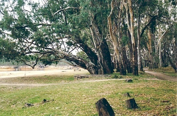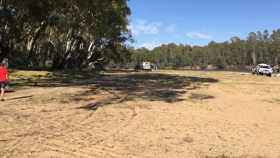 This is a large beach area which is surrounded by native Red River Gums with some short grass. It has two pit toilets for your convenience and there is a wasted collection area just a km from the beach.